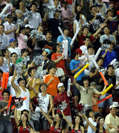 2006.08.31 21: 23'우리야 신문지 응원을 빼놓을 수 없지!'