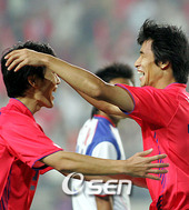 2006.09.06 20: 35정조국, 두번째 골 넣고 송종국과 포옹 세리모니