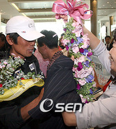 2006.09.15 19: 13꽃다발 받는 탈레이사가르 원정대 유상범 대원