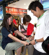 2006.10.01 14: 14'바지 끝에도 사인을 받네!'