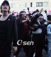 2006.10.10 23: 47김석훈, '메가폰 들고 시위'