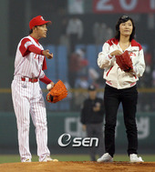 2006.10.11 18: 33사모님 김미려, 시구하러 왔어요
