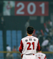 2006.10.11 18: 58'관중석에 송진우의 201승 팻말이 있네!'
