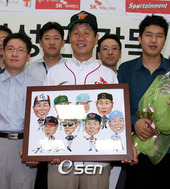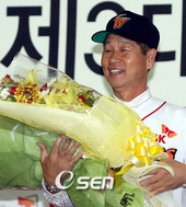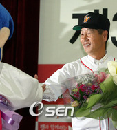 2006.10.15 16: 02김성근, '꽃다발이 꽤 크네!'