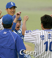 2006.10.21 17: 39승리를 자축하는 삼성 나인들