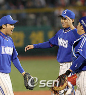 2006.10.25 22: 54박진만-배영수, '우리가 이겼어!'
