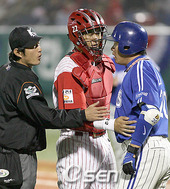 2006.10.25 23: 02구대성의 투구에 맞는 진갑용