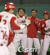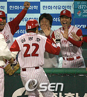 2006.10.25 21: 21심광호의 동점포에 환호하는 한화 벤치