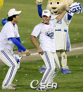 2006.10.29 19: 04우승 모자를 던져주는 삼성 선수들