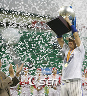 2006.10.29 19: 03우승컵을 높이 든 주장 진갑용