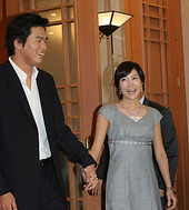 2006.12.18 13: 45다정스럽게 회견장에 들어서는 최희섭 커플