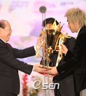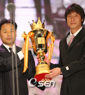 2006.12.20 15: 37삼성 하우젠컵 우승 트로피를 받는 FC 서울의 김병지