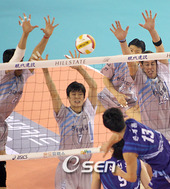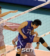 손재홍,'일단 블로킹에는 맞혔는데!'