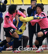 2007.03.03 16: 46개막골을 넣고 동료들과 환호하는 송정현
