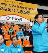 노동절 마라톤대회서 축사하는 김문수 경기도지사
