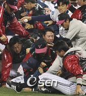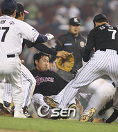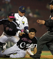 2007.05.04 20: 31난투극을 벌이는 안경현과 봉중근