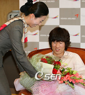 2007.05.21 10: 54스튜어디스로 부터 꽃다발을 받는 박지성