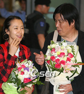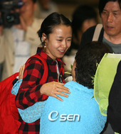 2007.05.29 16: 05전도연, 공항 마중나온 엄마 앞에서 '글썽'