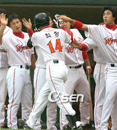 2007.07.06 19: 38홈런을 치고 동료들의 환영을 받는 최정