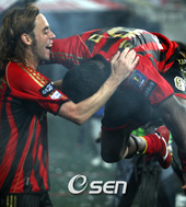 2007.08.01 22: 35김진규'입단하자 승리의 기쁨을 나누네!'