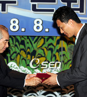 2007.08.08 12: 11김영수 총재, '김영만 코치, 수고 많았소!'