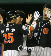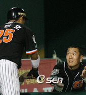 2007.08.10 22: 26정수근,'만호형 쇄기 홈런포 좋았어!'