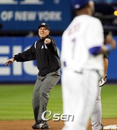 2007.08.11 11: 55물만난(?) 심판, '너 아웃이야'