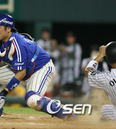 2007.08.19 21: 37최동수,'규민이, 세이브 축하한다!'