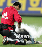 2007.08.19 21: 29김병지, 허리가 아픈가?