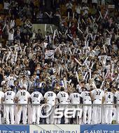 2007.10.04 22: 21응원단상에 오른 두산 선수들