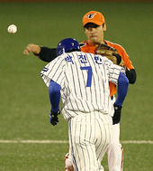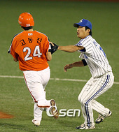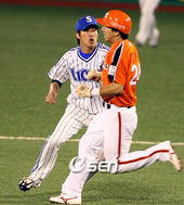 2007.10.10 19: 11신명철,'1루주자부터 태그하고!'
