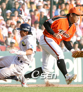 2007.10.14 16: 31이범호,'3루는 늦었고 2루나 잡자!'