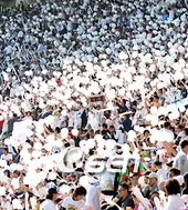 2007.10.14 15: 59두산 응원석은 하얀 풍선의 물결!