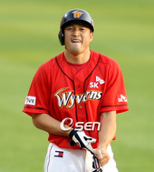 2007.10.27 17: 54김재현,'3루까지 뛰었더니 힘드네!'