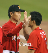2007.10.27 18: 18김재현과 하이파이브를 하는 김성근 감독
