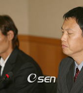 2007.10.30 19: 27눈을 감고 회견을 기다리는 이운재와 우성용