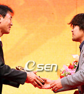 2007.12.03 18: 40강민수, 홍명보 코치로부터 직접 상을 받네!