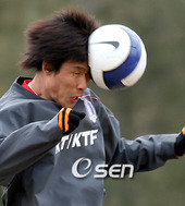 2008.01.28 15: 59정조국,'이마에 공이 딱 붙었네!'