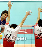 2008.01.31 18: 18김민지,'3인 블로킹에 어쩔 도리가 없네'