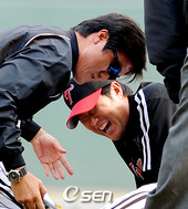 2008.03.12 15: 37최동수, 발등을 다쳤나?
