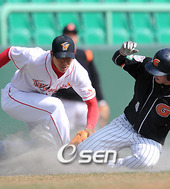 2008.03.14 14: 56정보명,'3루까지는 무리였나?'