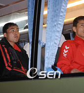 2008.03.23 21: 02차창 밖 취재진을 바라보는 북한 골키퍼 김명길