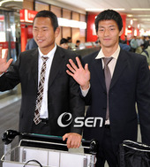 2008.03.24 17: 46격전지 상하이에 도착한 정대세와 안영학
