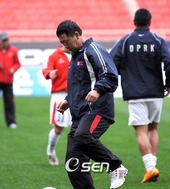 2008.03.25 19: 21김정훈 북한 감독,'나도 몸 좀 풀고!'