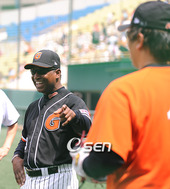2008.04.20 14: 23밝은 표정의 로이스터, 이대호와 농담 중!