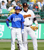 2008.04.26 16: 53박진만 이대호,'우리는 다정한 선후배'