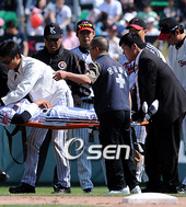 2008.05.05 15: 44'강습타구 맞고 들것에 실려 나가는 권용관'