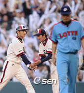 2008.05.11 19: 32이재주-이용규,'우리 둘 다 들어왔어!'
