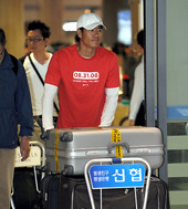 2008.05.13 17: 15짐을 밀며 입국장을 나서는 설기현