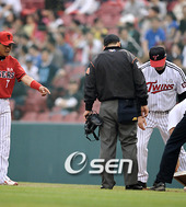 2008.05.23 20: 29봉중근,'왼쪽 종아리 부상이 문제야!'
